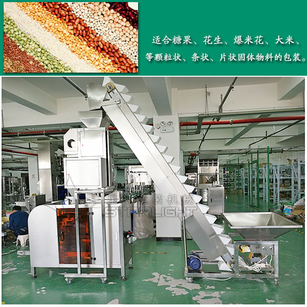 3.腰果包裝機設(shè)備采用單螺旋變頻大、小雙給料方式,提高工作精度和速度