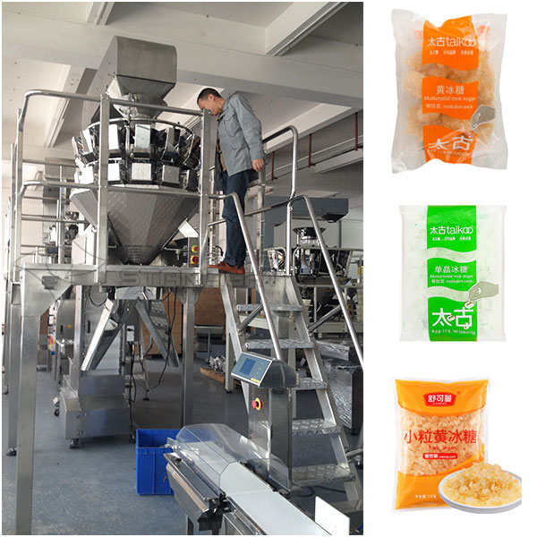 袋裝冰糖包裝機設備生產線實拍以及樣品